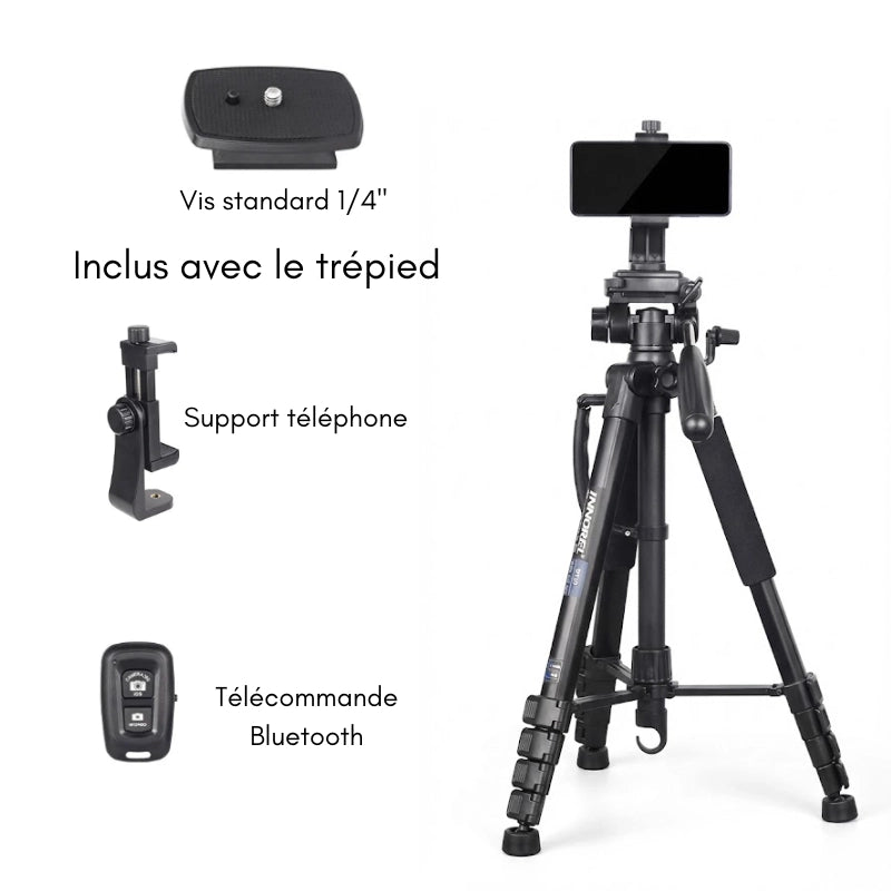 Oui. Le trépied est livré assemblé et utilisable dès réception. Aucun montage complexe n’est nécessaire : il suffit d’ouvrir les sections, d’ajuster la hauteur et de fixer l’appareil sur le support prévu.
